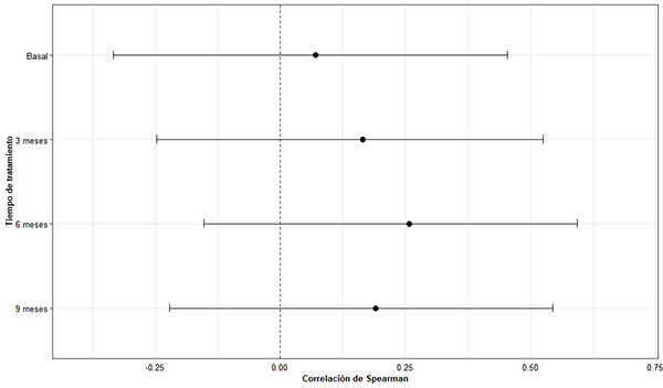 En el presente estudio, el EMC también demostró una asociación significativa con los cambios en la AV. A lo largo del tratamiento, los que presentaron un aumento de EMC superior al promedio no lograron grandes mejoras en la AV en comparación con los que presentaron un EMC inicial inferior al promedio.