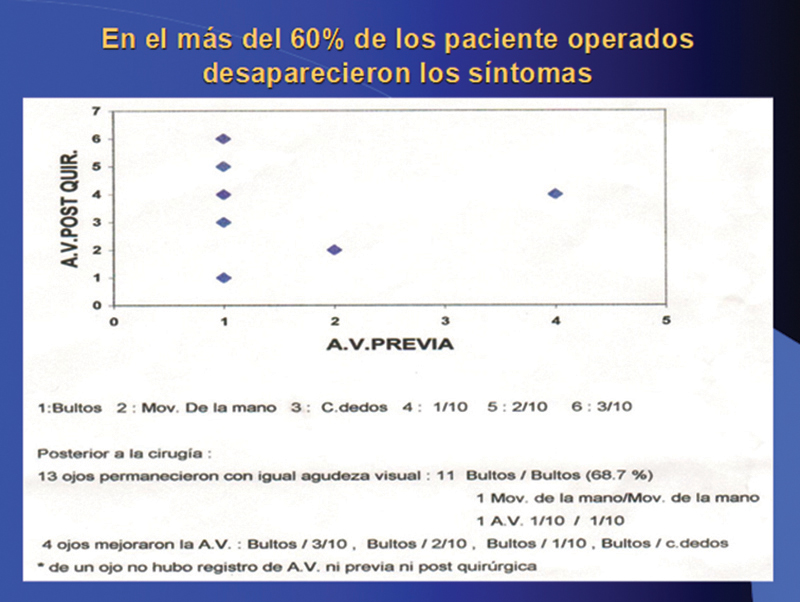 A través de un seguimiento entre 4 y 16 meses se observó una importante mejoría de la agudeza visual en tres casos y desaparición de síntomas, en casi todos los casos.
