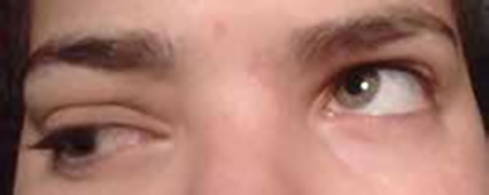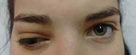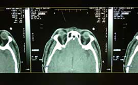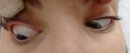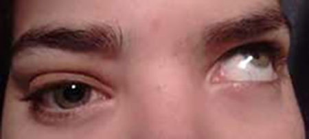 A.B.A., de 15 años de edad y sexo femenino. En la madrugada del 25/12/18 se encontraba caminando por la acera cuando de pronto se produce un intercambio de disparos entre dos masculinos que se desplazaban en motocicleta y otro a la vera del camino. Al escuchar las detonaciones, gira su rostro para ver la escena que ocurría unos 25 mts. del lugar donde se encontraba, cuando siente un impacto en cara anterolateral izquierda de su nariz e inmediatamente después percibe ausencia de visión en su ojo derecho. Concurre a institución especializada donde se practica tomografía computada y se opta por tratamiento conservador antibiótico y antiinflamatorio (amoxicilina-clavulánico y ketorolaco). Por proyectil extraído del TCS de otra persona afectada (trayecto en sedal) se presume calibre 22.• AV s/c OD: Visión No luz OI; 10/10.