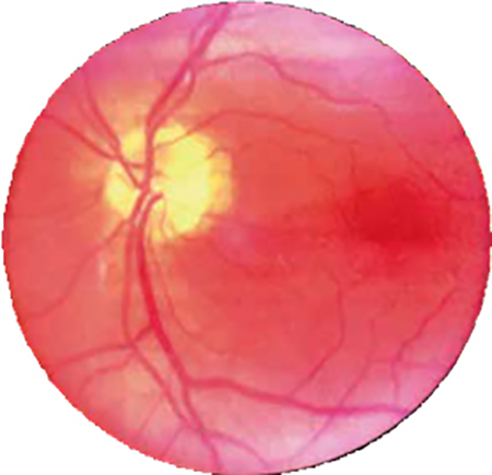 • Fondo de ojo: OD extensa área de denudación coriorretinal, atrofia óptica, gran movilización de pigmento.
