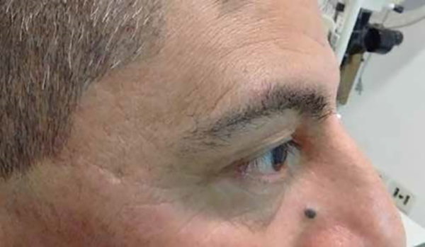 F.F.M. Masculino de 72 años de edad. A diferencia del caso precedente el paciente concurre a la consulta por motivos refractivos, y en el interrogatorio sobre antecedentes oftalmológicos relata que 15 años antes perdió la visión de su OD a raíz de un intento de robo por parte de dos masculinos los que lo sorprenden subiendo a su rodado obligándolo a marcharse con ellos con el mismo. Ante su ansiedad y al querer resistirse uno de los malvivientes le efectúa un disparo a unos 50 cm. de distancia el que ingresa por piel de párpado inferior OD ángulo ínfero-interno, y luego de un curioso recorrido intracorporal termina alojándose en la axila izquierda, en una trayectoria que Bonnet describe como proyectiles migradores 2 lesionando en su camino órbita y globo ocular derecho y parcialmente el plexo braquial izquierdo. A consecuencia de los mismos el paciente tiene ausencia de visión OD, anestesia en el territorio inervado por la segunda rama del trigémino derecho, e impotencia funcional para elevar el miembro superior izquierdo. El paciente refiere que hubo desprendimiento retinal que fue operado poco tiempo después del incidente. Cinco años después se lo operó por catarata traumática.