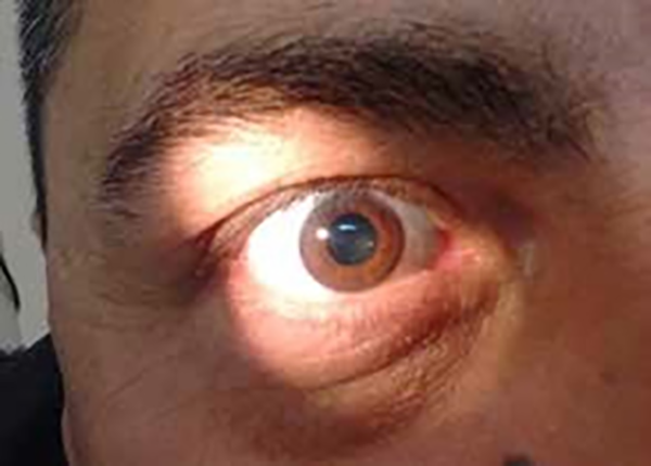 • BMC: OD Medios refringentes transparentes. CA formada, libre y de profundidad uniforme. Iris trófico y en midriasis media. OI Córnea transparente, CA formada, libre y de profundidad uniforme. Cristalino: Catarata rubra (ver fotografía).