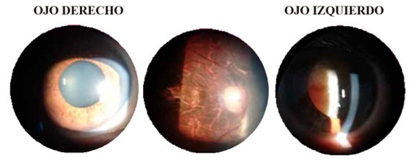• BMC: OD: Iridodonesis, afaquia. OI: Leve opacificación lenticular nuclear. En el resto del examen no se observan datos de interés.